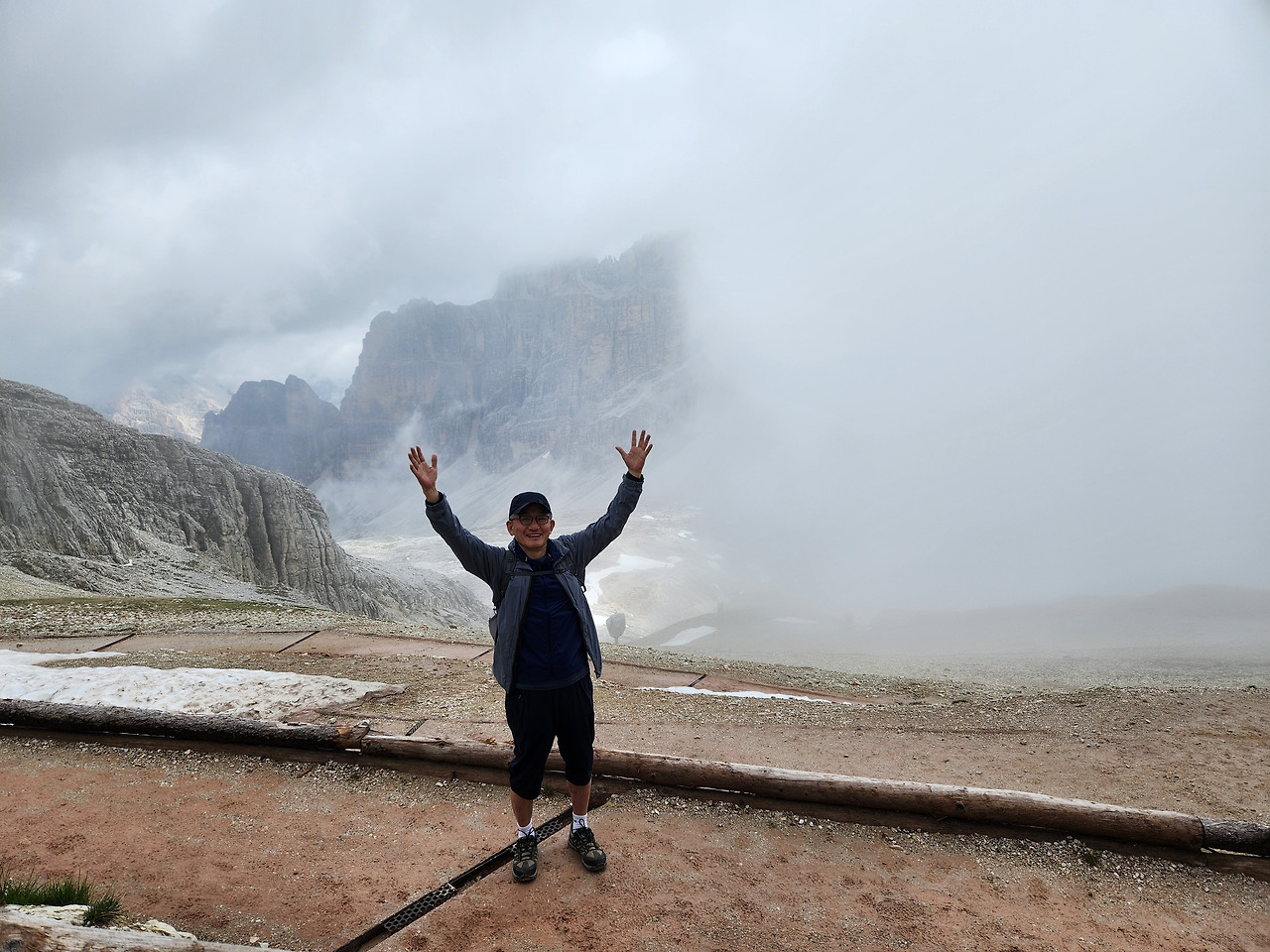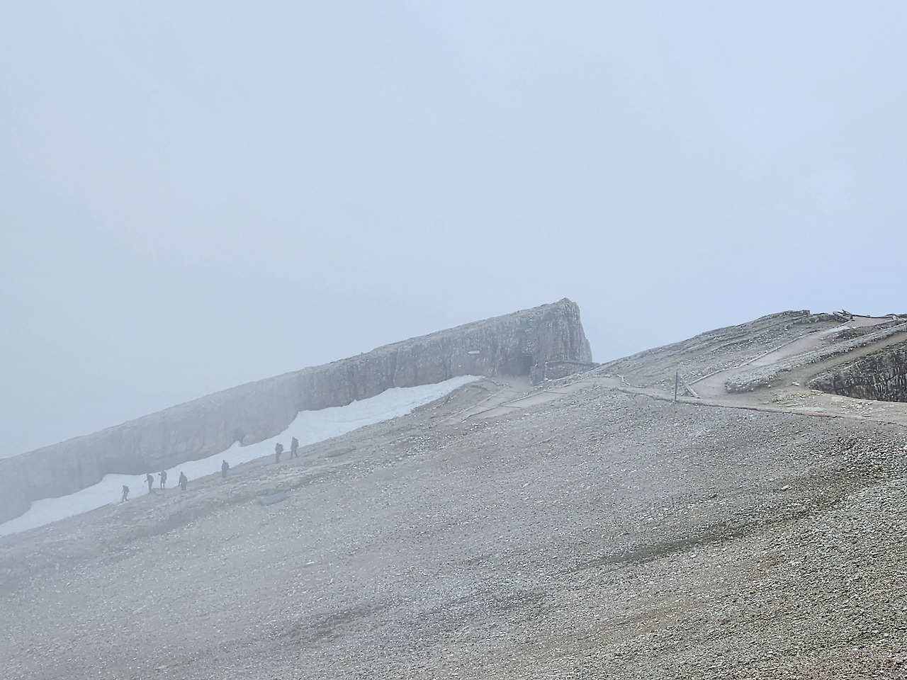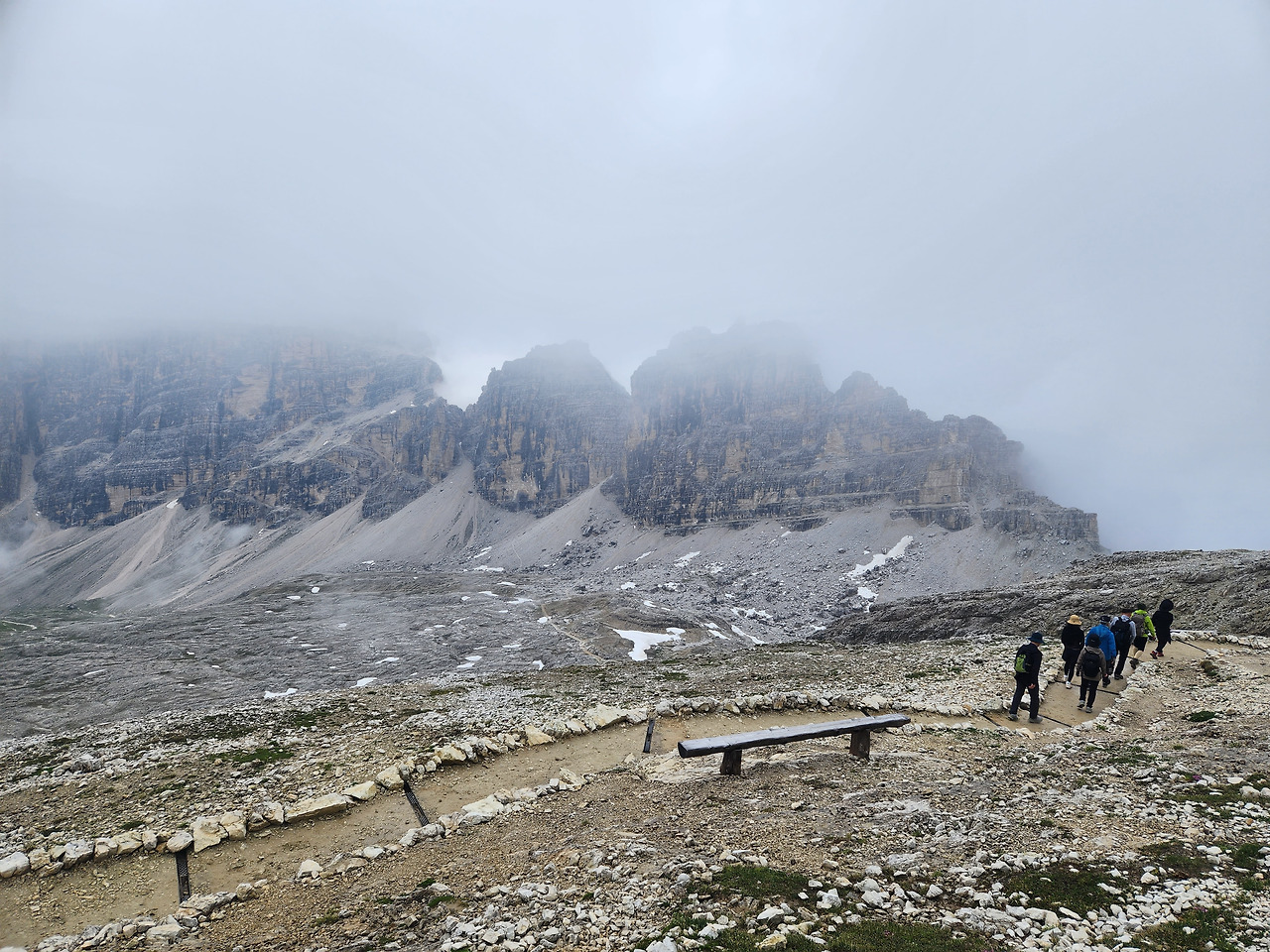 사진 17. 돌로미티에는 이처럼 거대한 판상 암괴가 드물지 않게 눈에 띈다. 운무가 갑자기 짙게 끼기 시작했다.