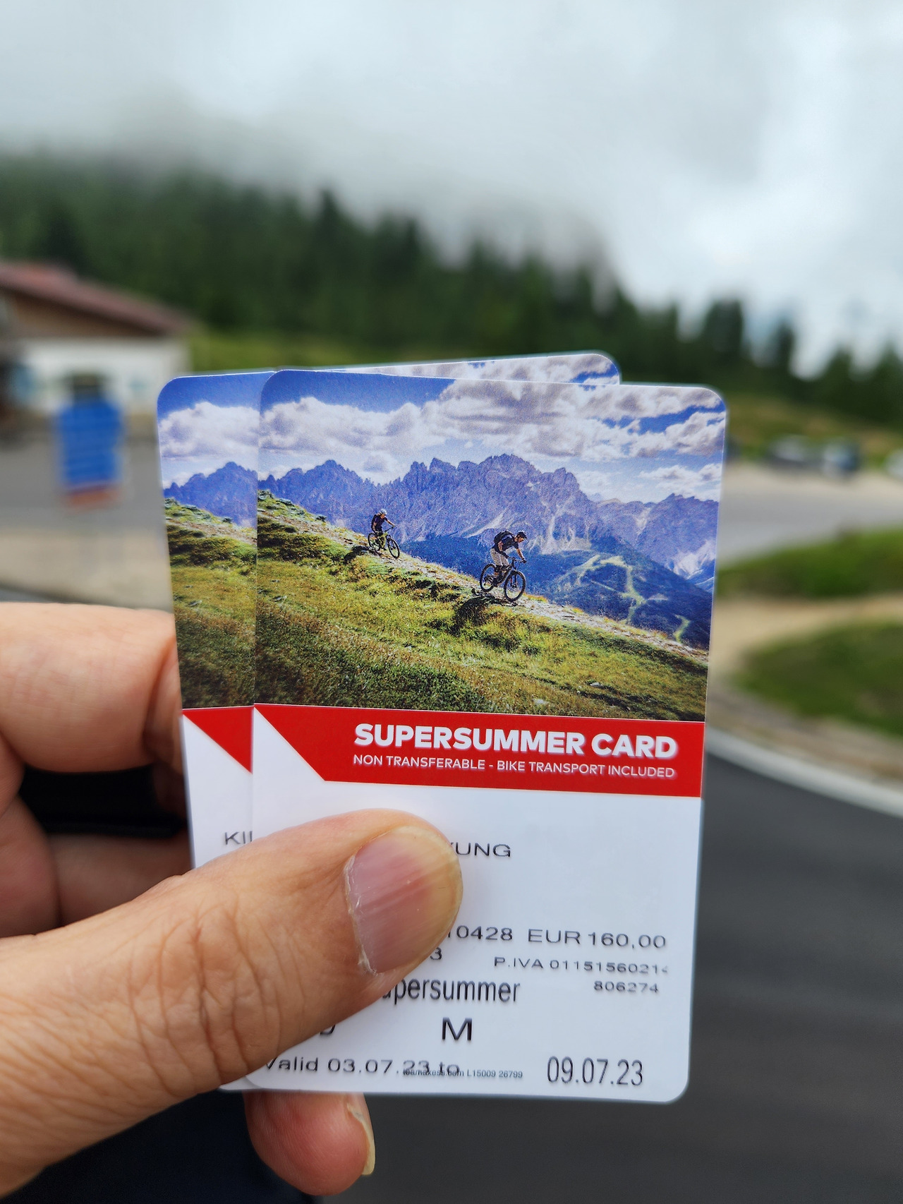 사진 4. 돌로미티 수퍼썸머 카드: 7일 체류기간 중에 5일간 케이블카/곤돌라/리프트 무제한 이용권을 160유로에 구입했다. 카드에는 소유자 이름과 유효기간이 인쇄되어 있다.