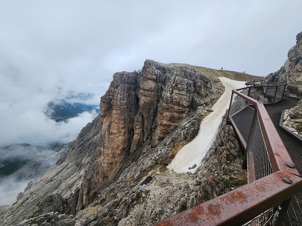 사진 20. 라가주오이의 벼랑길 (Kaiserjäger path: 오스트리아-헝가리 제국의 산악부대 이름인 '왕의 사냥꾼' 부대의 병참로) 보는 것만 해도 아찔하다.
