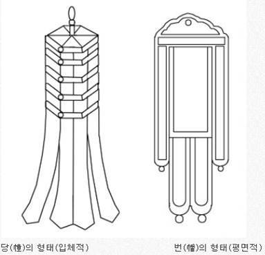 <사진 7> 불교의식 용구인 당(幢)과 번(幡)의 생김새