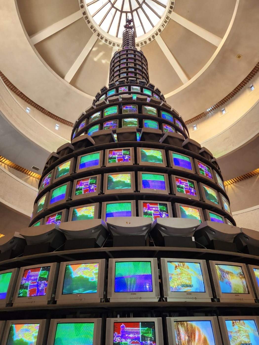 아래는 과천 국립현대미술관을 대표하는 작품: 백남준의 다다익선 (1-2년 전에 대대적인 수리를 거친 후, 시간대별로 작품 영상을 틀어줍니다.)