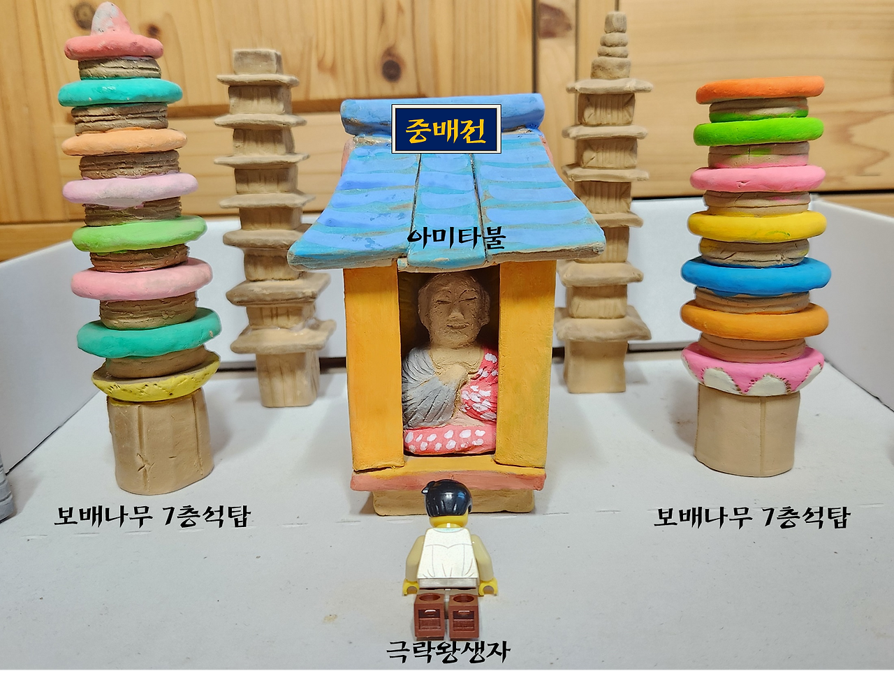 고려 <관경16관변상도> 불화의 주제는 '참회와 극락왕생'이며, 완벽한 좌우 대칭구도를 특징으로 하는 종교화이다. 이를 바탕으로 필자가 천불천탑 공간의 중배관 영역을 재현해 본 것이 아래 <사진 4>이다. 극락장엄물인 7층보배나무(=원형다층석탑)을 중배전 정면에 세우면 안 된다. 왜냐하면 장엄물인 보배나무가 극락의 주인공인 아미타불의 전신을 가리면 안 되기 때문이다. 천불천탑이 세워진 14세기 초, 고려 후기의 중배관은 아마도 <사진 4>처럼 되어 있었을 것이다.