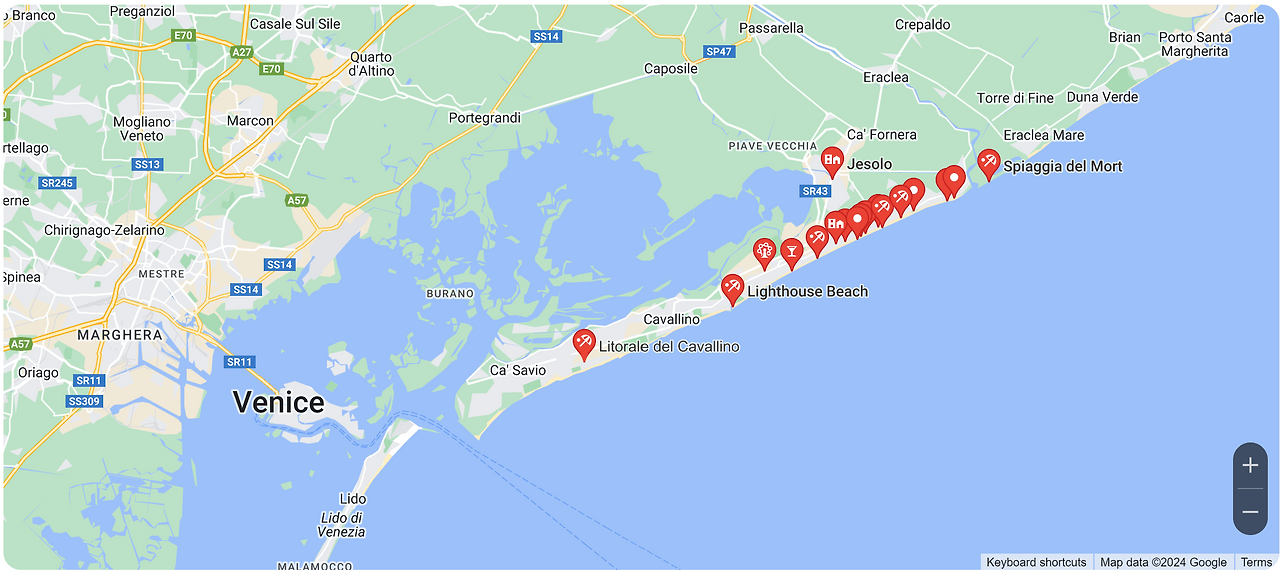 여행을 다녀와서 내가 버스를 잘못 타고 내린 그 동네가 무슨 동네인지 몹시 궁금했다. 버스가 사람으로 가득 찰 만큼 많은 사람들이 가는 곳이라면 유명한 관광지임에 틀림없을 텐데... 베네치아 동북부에 유명한 관광지가 있다는 얘기는 들어보질 못했다. 그래서 구글지도의 타임라인을 뒤져 2023년 7월 8일 내 행적을 살펴보았더니, 그 동네 이름은 에소로(Jesolo)였고, 바로 근처에 길이가 15km에 달하는 해수욕장이 있는, 그래서 매년 550만 명이 찾아간다는 유명한 해변 리조트였다. 언젠가 또 한 번 베네치아를 간다면 에소로 해변에 들러바닷물에 몸을 담그고 싶다. ^^