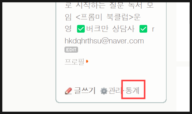 PC에서 네이버 블로그에 접속한다. 프로필 영역 하단 오른쪽에 있는 통계를 눌러 접속해 보자.