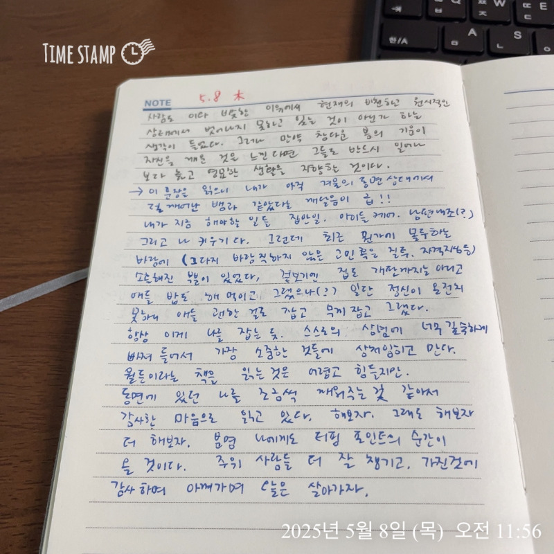 내가 운영하는 독서 모임은 매일 읽어야 할 책의 분량이 정해져 있고, 매일 책을 읽은 뒤 인상 깊었던 문장 하나를 노트에 필사하고, 바로 아래에 내 생각을 적는 것이 미션이다.