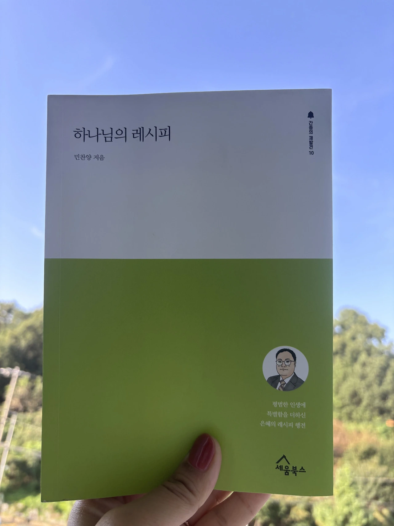 한국 성서 대학교를 졸업하고, 당고개에 신작교회를 개척해서 주변의 어려움을 살피던 민찬 양 목사님의 하나님의 레시피를 한자도 빠짐없이 읽었습니다.