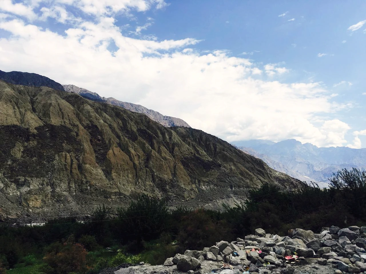 벡은 길깃에서 볼 일을 보고 이틀 뒤 가족들이 모두 살고 있는 훈자로 들어갈 것이라고 했다. 급하게 서로의 sns 아이디를 교환하며 꼭! 훈자에서 다시 보자고 약속했다. 우리가 탄 봉고차는 훈자로 놀러 왔다는 파키스탄의 대학생들 한 무리를 태우고 그들과 함께 들뜬 마음으로 출발했다. 3시간 정도 봉고차는 포장이 잘 된 길 위를 미끄러지듯 달렸고, 알리아바드 시내에서 우리를 무사히 내려줬다. 우리는 시내에서 20~30분 정도 헤맨 후 카리마바드 훈자로 들어가는 지프차를 겨우 찾았다. 그리고 그 지프차는 오래 걸리지 않아 우리가 미리 알아 놓은 한 숙소가 있는 제로 포인트 앞에 섰다.