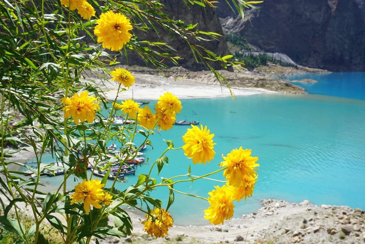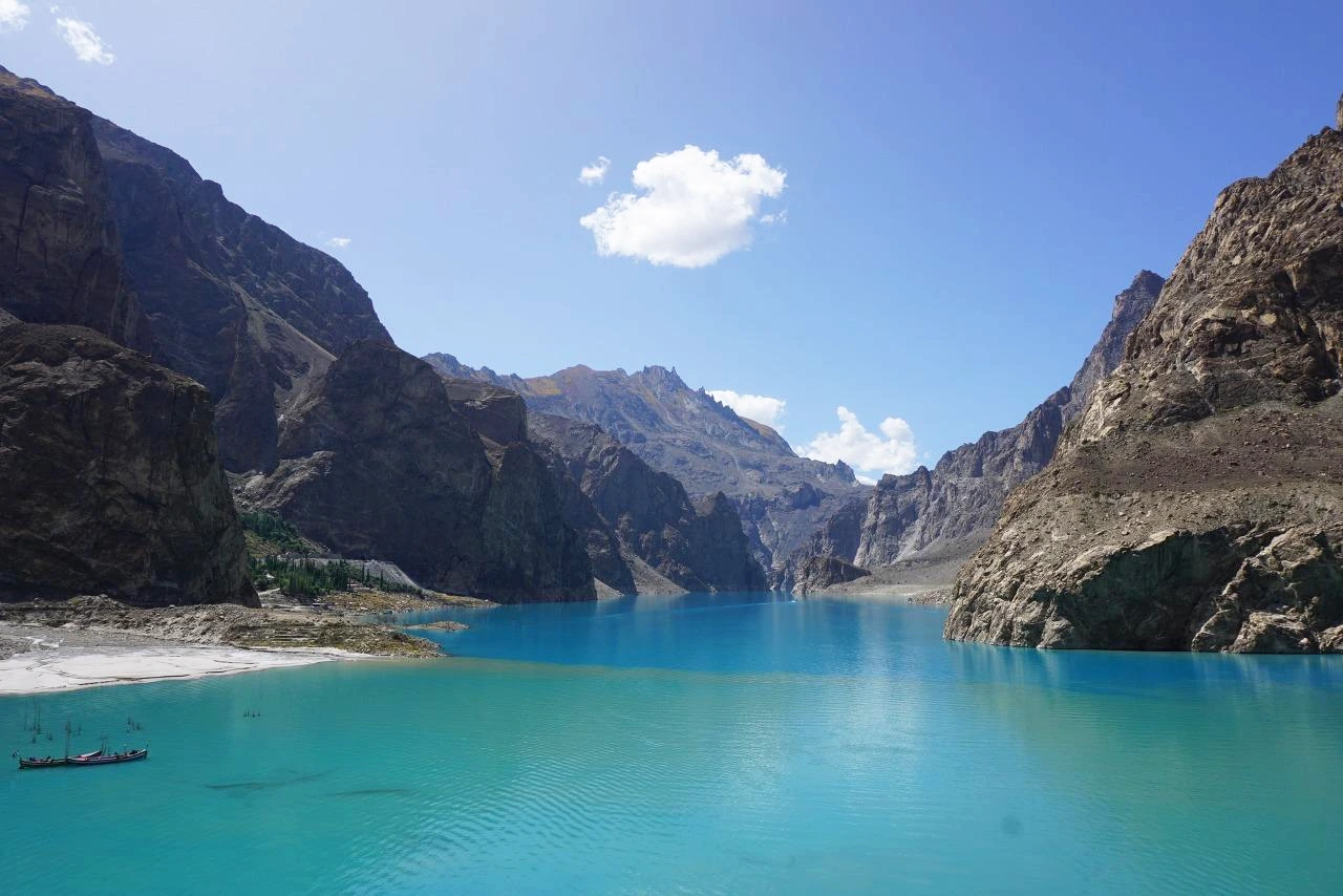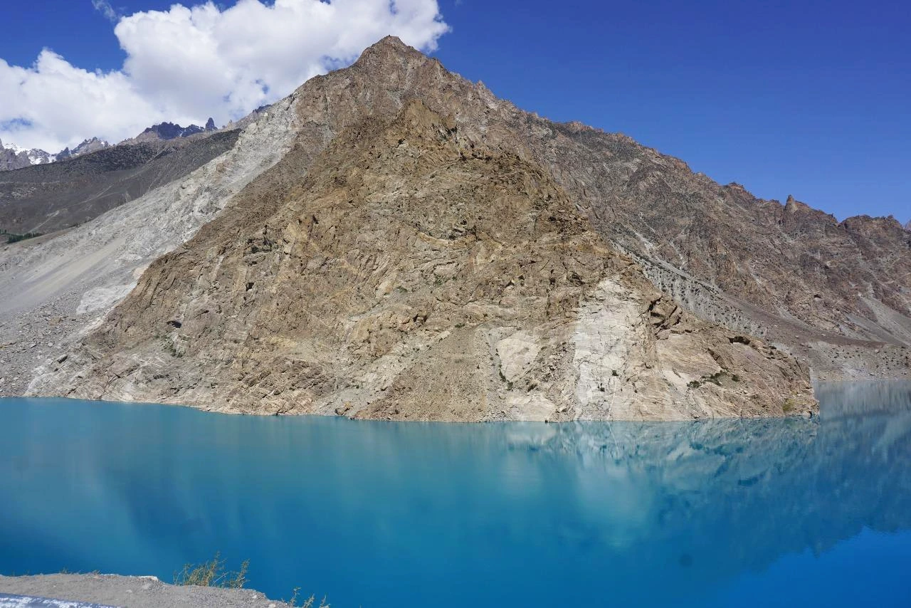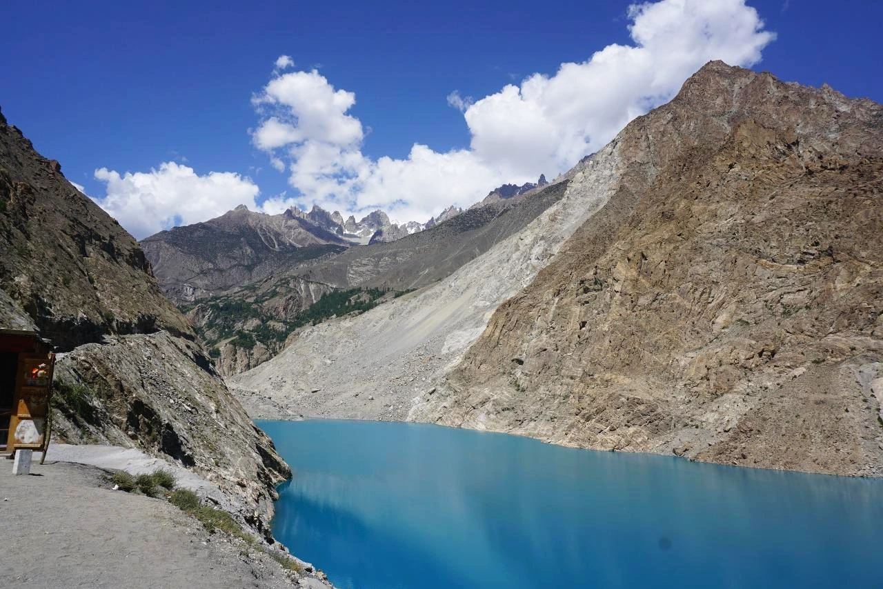 [아따바드 호수(Attabad Lake)는 2010년 산사태로 인해 훈자 강이 막히면서 만들어진 천연 호수이다. 그 당시 몇 개의 마을이 물에 잠기는 대참사가 일어난 곳이기도 하다. 그 후로 훈자에서 파수를 가려면 이 아따바드 호수에 배를 띄워 건넜어야 했는데, 2015년 몇 개의 터널을 뚫고 도로를 만들고 나서부터는 도로를 이용해 왕래가 가능하게 되었다. 현재 이곳은 이전의 대참사의 슬픈 기억을 뒤로하고 아름다운 호수 빛 덕분에 파키스탄 국내에서도 각광받는 관광지가 되었다고 한다. 이곳은 몇십 명의 희생으로 만들어진 슬픈 사연이 있는 호수이기도 하다.]