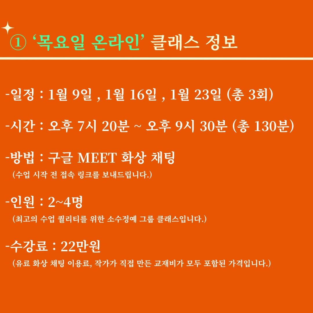 *일정 : 1월 9일 / 1월 16일 / 1월 23일 (총 3회)