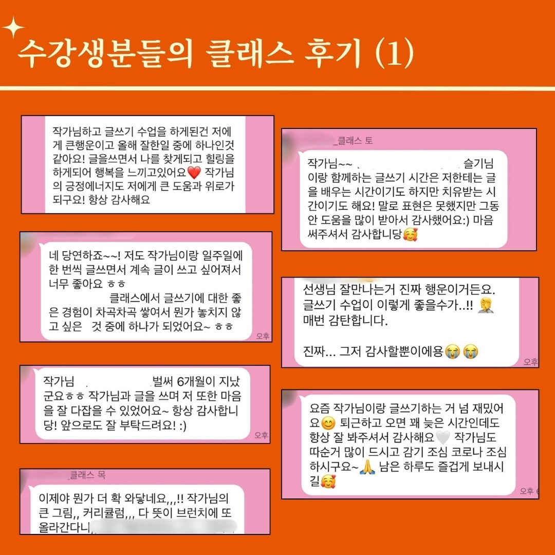 *평균 수업 기간 9~10개월! 만족도가 높은 글쓰기 클래스! (1 : 1 수강생분들)