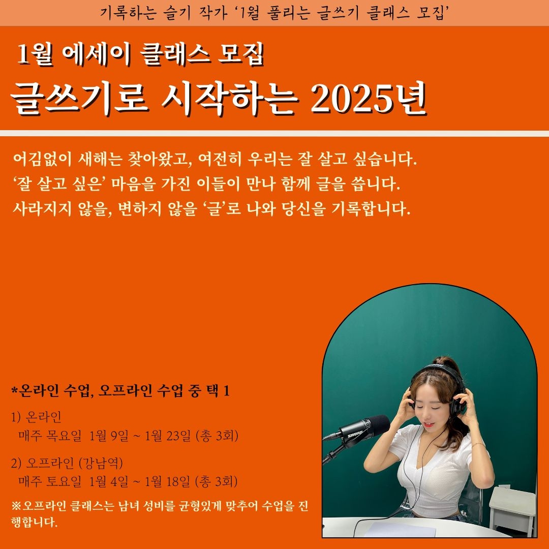 '풀리는 글쓰기 클래스 2025년 1월 수강생을 모집'합니다.