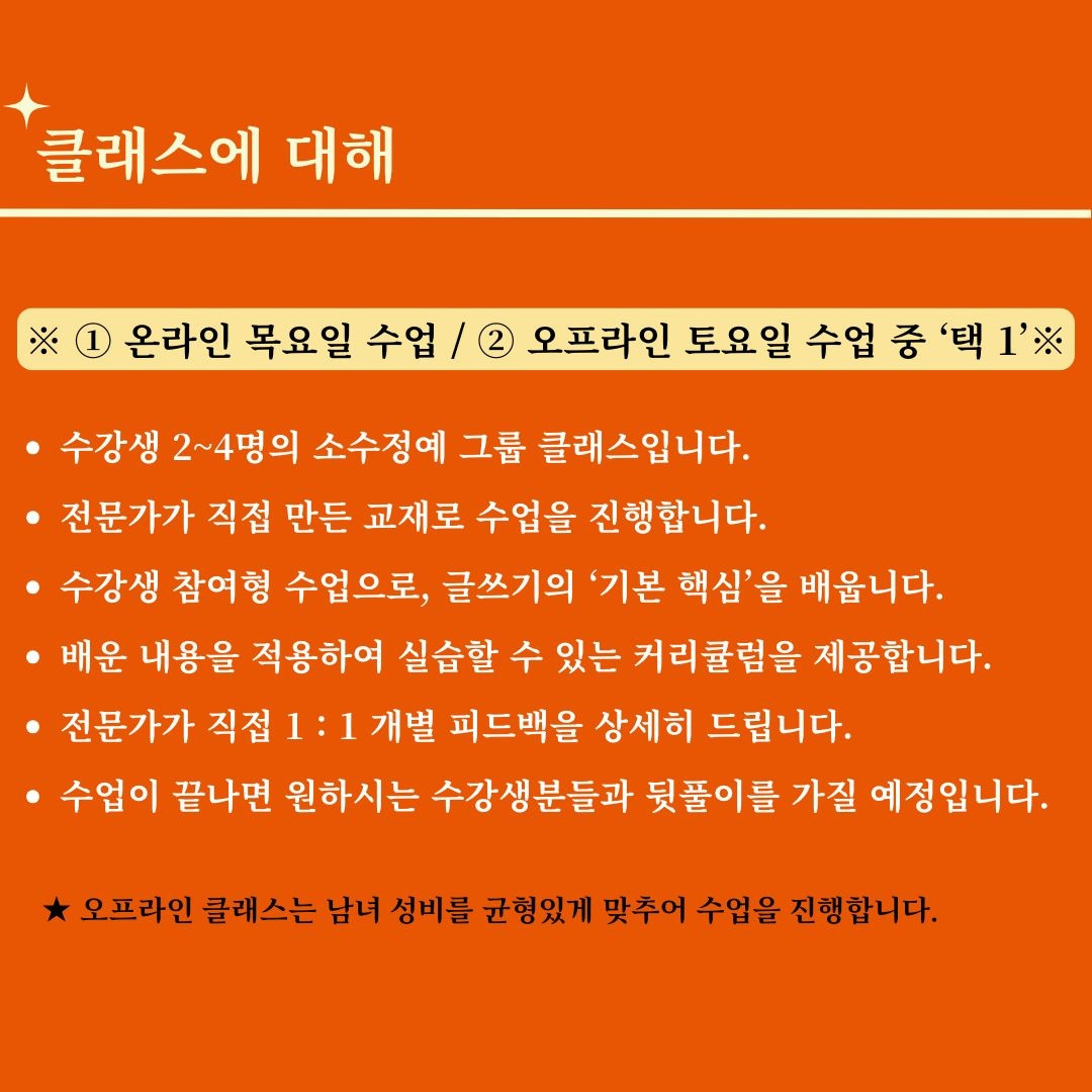 *최대 인원 8~15명과는 차원이 다른 소수 정예 프리미엄 글쓰기 클래스!