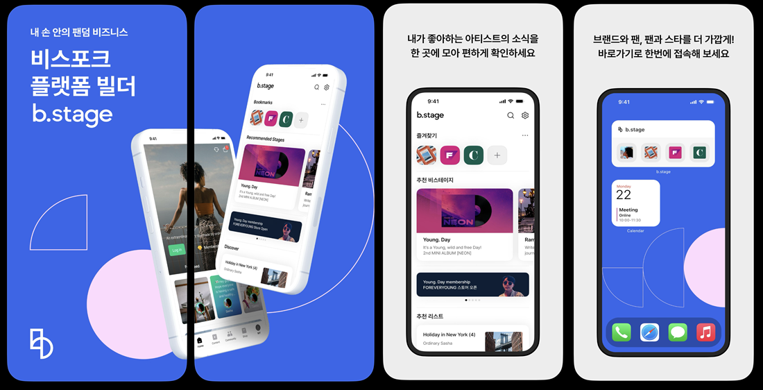 � 비스테이지는 비마이프렌즈가 크리에이터와 브랜드를 위해 개발한 비스포크 플랫폼 빌더다. 플랫폼 디자인과 브랜딩, 콘텐츠 게시 및 판매, 멤버십, 후원, 커뮤니티 등 크리에이터와 브랜드가 스스로를 표현하고, 콘텐츠를 공유하고, 팬과 소통하는 데 필요한 모든 기능과 서비스를 제공한다. 크리에이터는 더 이상 여러 플랫폼과 채널을 오가지 않아도 한 곳에서 다채로운 기능을 자유자재로 구성하고 이용할 수 있다.