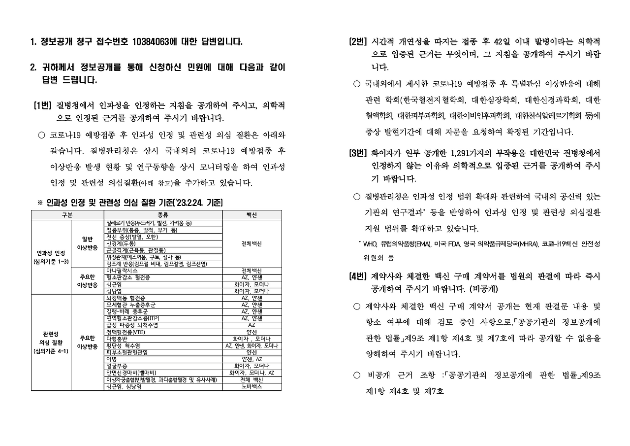 - 내용 : 백신부작용 진상규명 및 인과성 인정