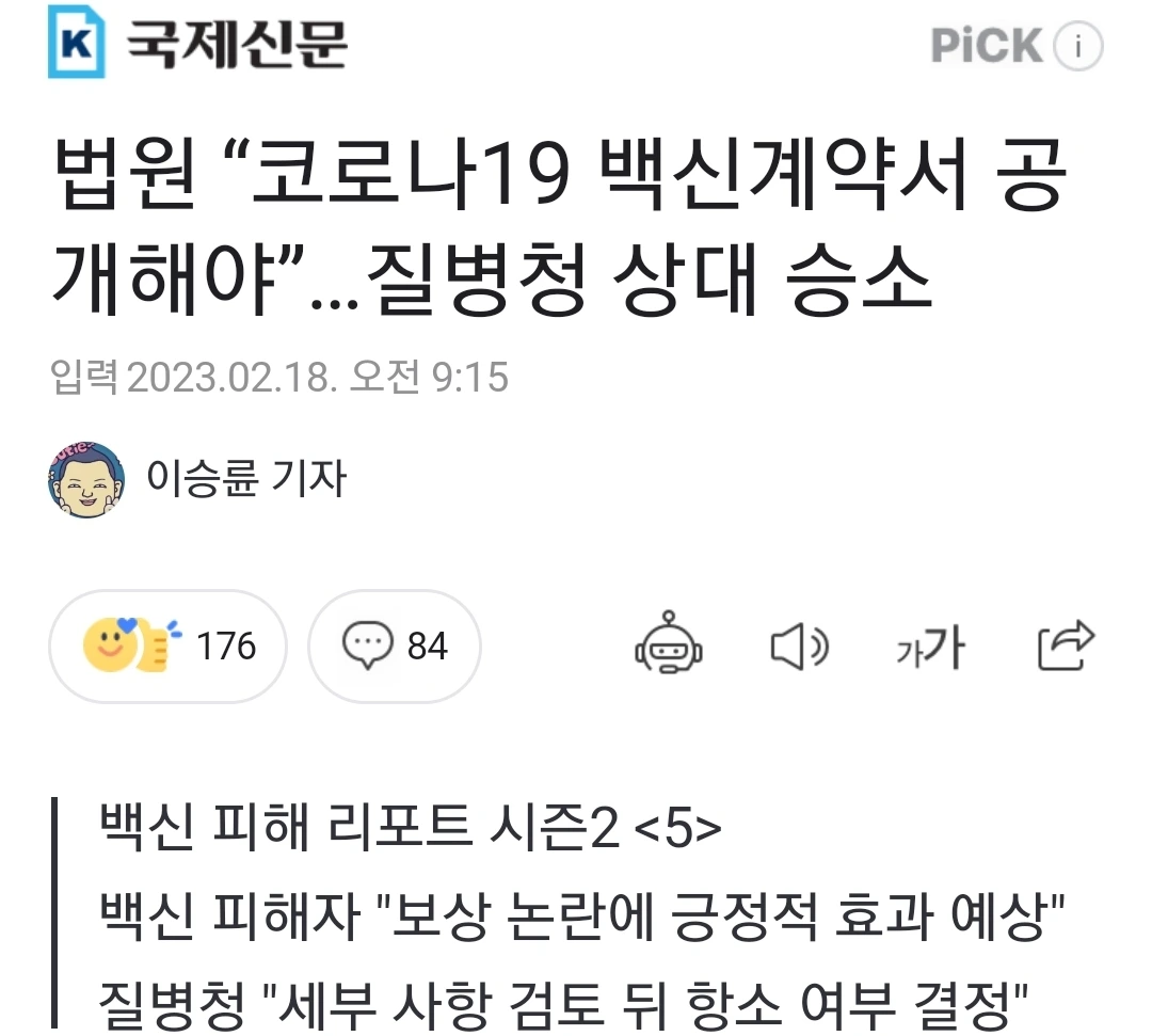 질뻥청 백신계약서 공개 판결에 '항소'