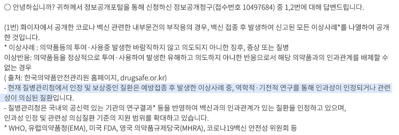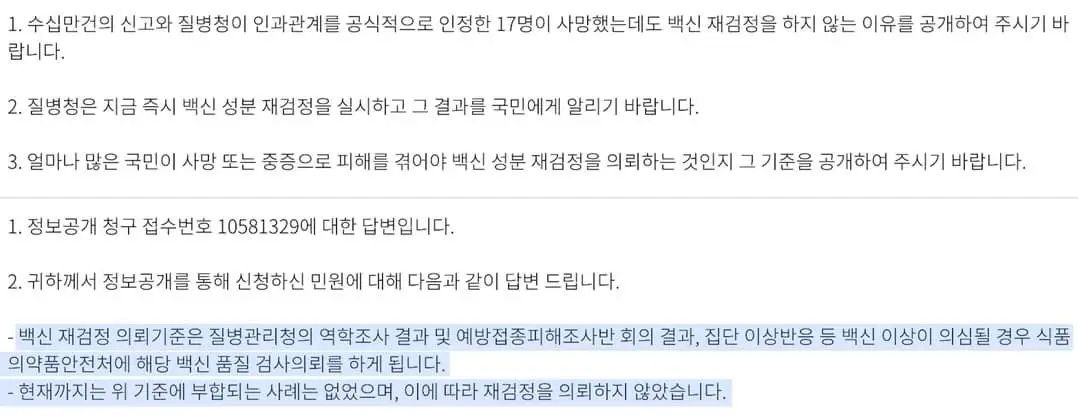 ※ 이 내용에 대한 질병청의 입장에 대해 추가적으로 정보공개청구를 해봐야겠다.