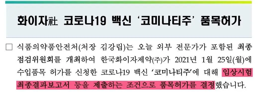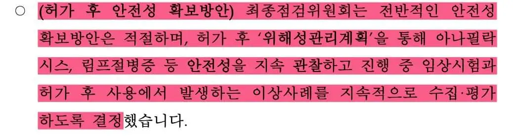 그 결과를 토대로 허가를 내줬는데, 그 결과를 무시하고 새로운 의학적, 기전적 이상반응을 연구할 이유를 공개해야 한다.