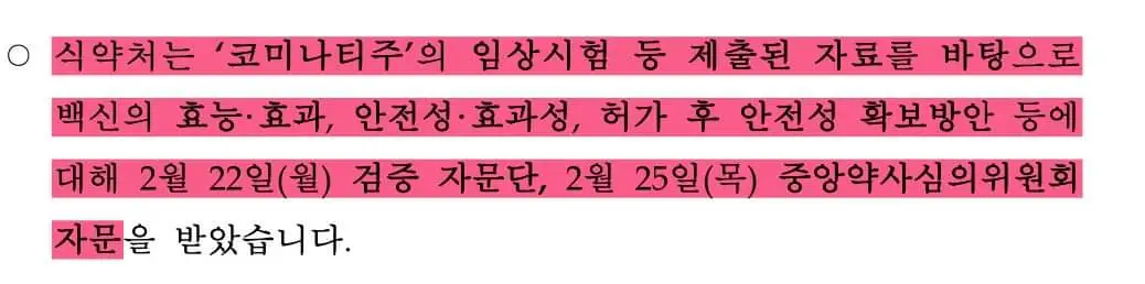 ■ 코로나 백신은 식약처에서 예방 효과에 대한 과학적 근거 없이 '예방 효과'를 이유로 허가함