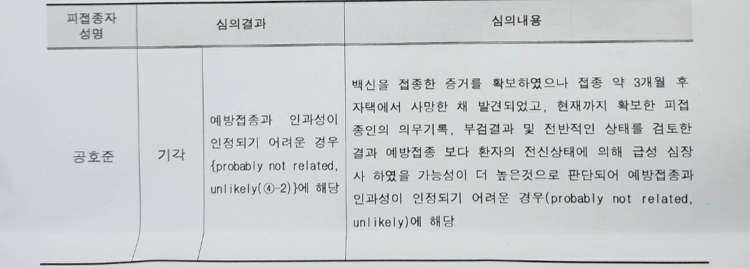 슬비 인과성 심의결과에는 의학적 근거는 단 한 줄도 없다.