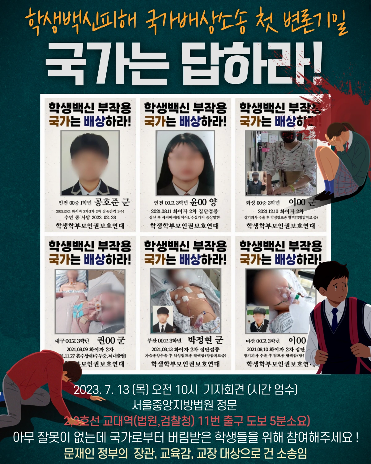 오늘은 청소년 백신 피해 국가배상소송의 첫 변론이 있는 날입니다.