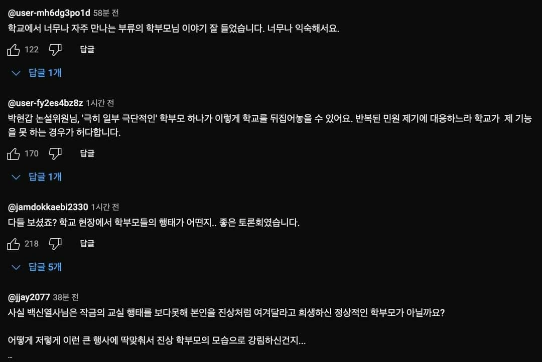 그런 부모 밑에서 자란 아이들 일부에 문제가 있다는 것도 아는 사실이고 학생인권조례 같은 것으로 교권이 흔들린다는 것도 아는 사실이다. 교권이 강화되어야 한다는데 동의한다.