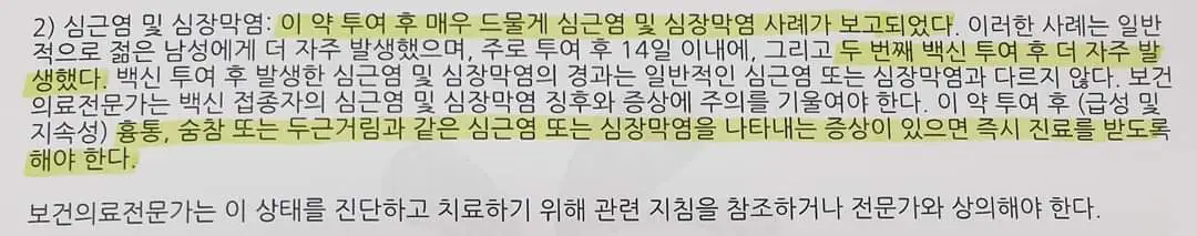 - 접종 차수가 높아질수록 심장에 손상이 갈 확률이 높다는 걸 제약사도 밝혔고 연구 논문에서도 밝혔음