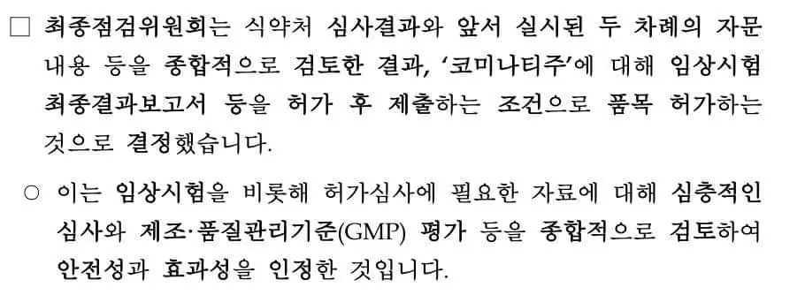 허가 후 임상시험 최종결과보고서를 제출하는 것이 면밀한 검토라는 식약처