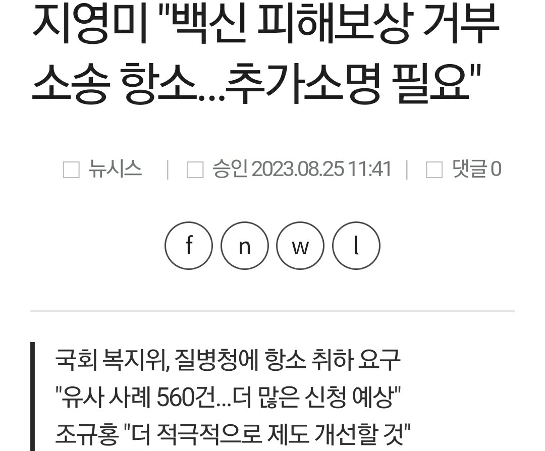 ■ 지영미 질병청장, 백신피해 유가족 상대 항소 계속할 것