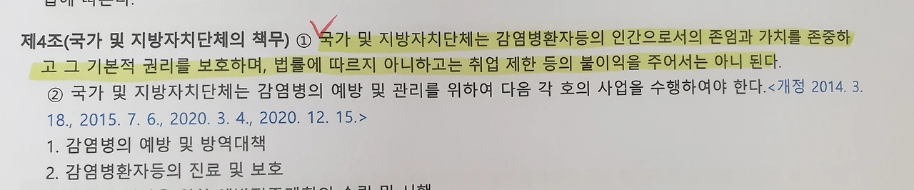 감염병 예방법에서 국민의 권리는 두어줄 뿐이다.