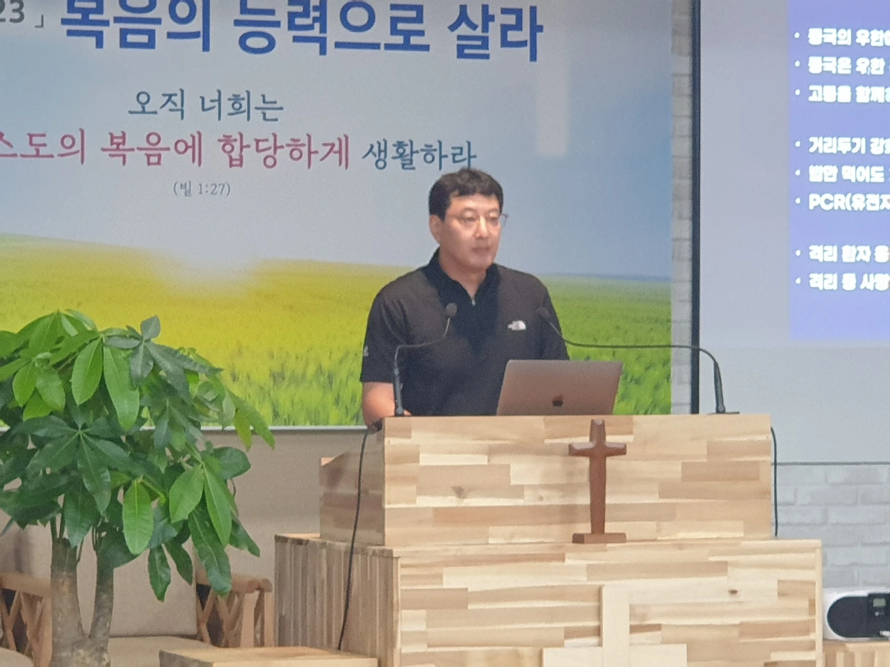 포항의 한 교회에서 백신부작용을 알리는 필자