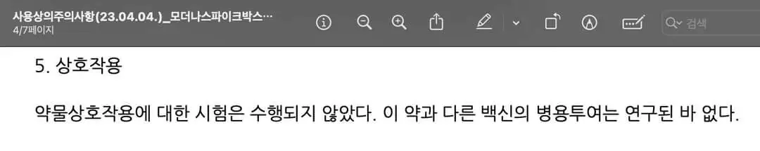 화이자, 모더나, 얀센, 아스트라제네카, 스카이코비원 등 모든 코로나 백신은 다른 백신과 병용투여는 연구된 바 없습니다. 대한민국에 유통되는 백신이 수십 가지라고 가정하더라도 약물 상호작용에 대한 연구의 경우의 수가 너무나 많기 때문에 그 연구가 이루어질 수 없습니다. 대한민국 정부, 식약처, 질병청, 의사들이 동시접종의 안전성과 유효성 연구결과가 확인되었다고 말하는 것은 거짓말입니다!!