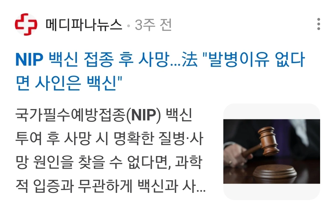 NIP(국가필수백신) 백신 접종 후 사망…法 "발병이유 없다면 사인은 백신