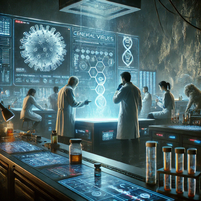 "맞아. 하지만 핵심은 여전히 ‘종간장벽’이야. 우리가 다루고 있는 바이러스는 동물에게는 매우 치명적이지만, 인간에게는 전혀 영향을 미치지 않잖아. 이 종간장벽을 넘기 위해서는 근본적인 유전자 변형이 필요해."