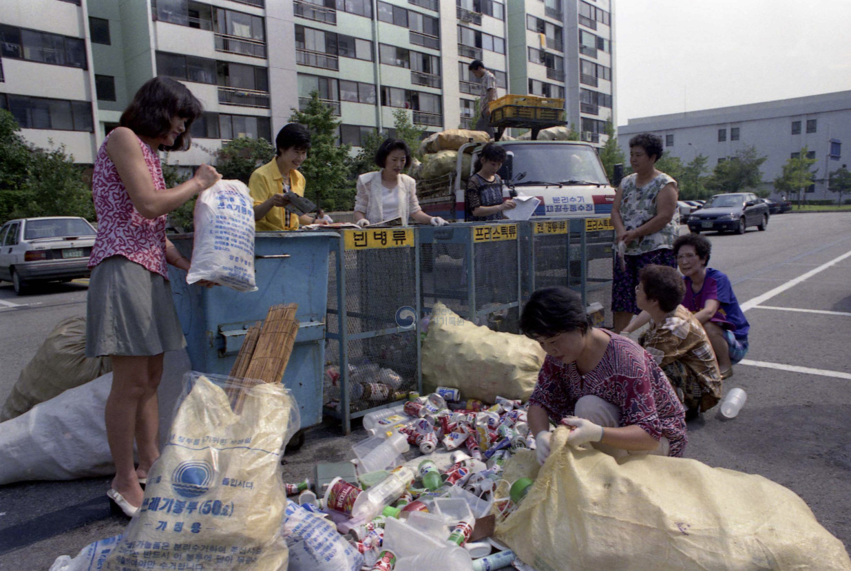 1995년, 아파트 단지 앞에서 분리배출을 하고 있는 주민들 (ⓒ국가기록원)