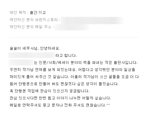 솔직히 어느 출판사가 제가 쓴 글로 책을 출판할 생각을 할 수 있을까요?