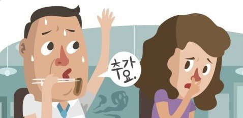 음식을 통한 관리는 사실 애매하다. 어떤 음식을 즐겨 먹는다고 해서 금세 땀이 사라지는 것은 아니기 때문이다. 다만 전체적인 큰 틀에서 살펴보자면, 맵고 자극적인 음식은 교감신경을 흥분시킬 수 있고 땀을 나게 만든다. 특히 살이 찔 경우 땀이 많이 나기 때문에 체중 관리가 중요하다. 육류, 햄, 피자 등 칼로리가 높은 인스턴트식품도 좋지 않다. 종합적으로, 한식 위주의 담백한 식사가 다한증 환자에게 적합하다고 이해하면 되겠다.