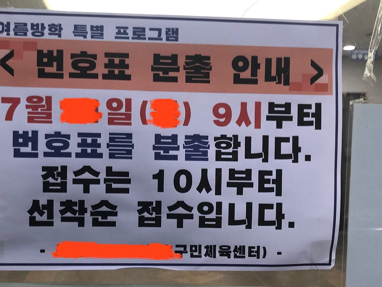 "잠시 후 아홉 시부터 번호표를 뽑아가세요. 한 사람당 한 장 씩만 가져가세요. 열 시에 그 번호표 순서대로 과목별 신청서를 나눠드릴 겁니다."