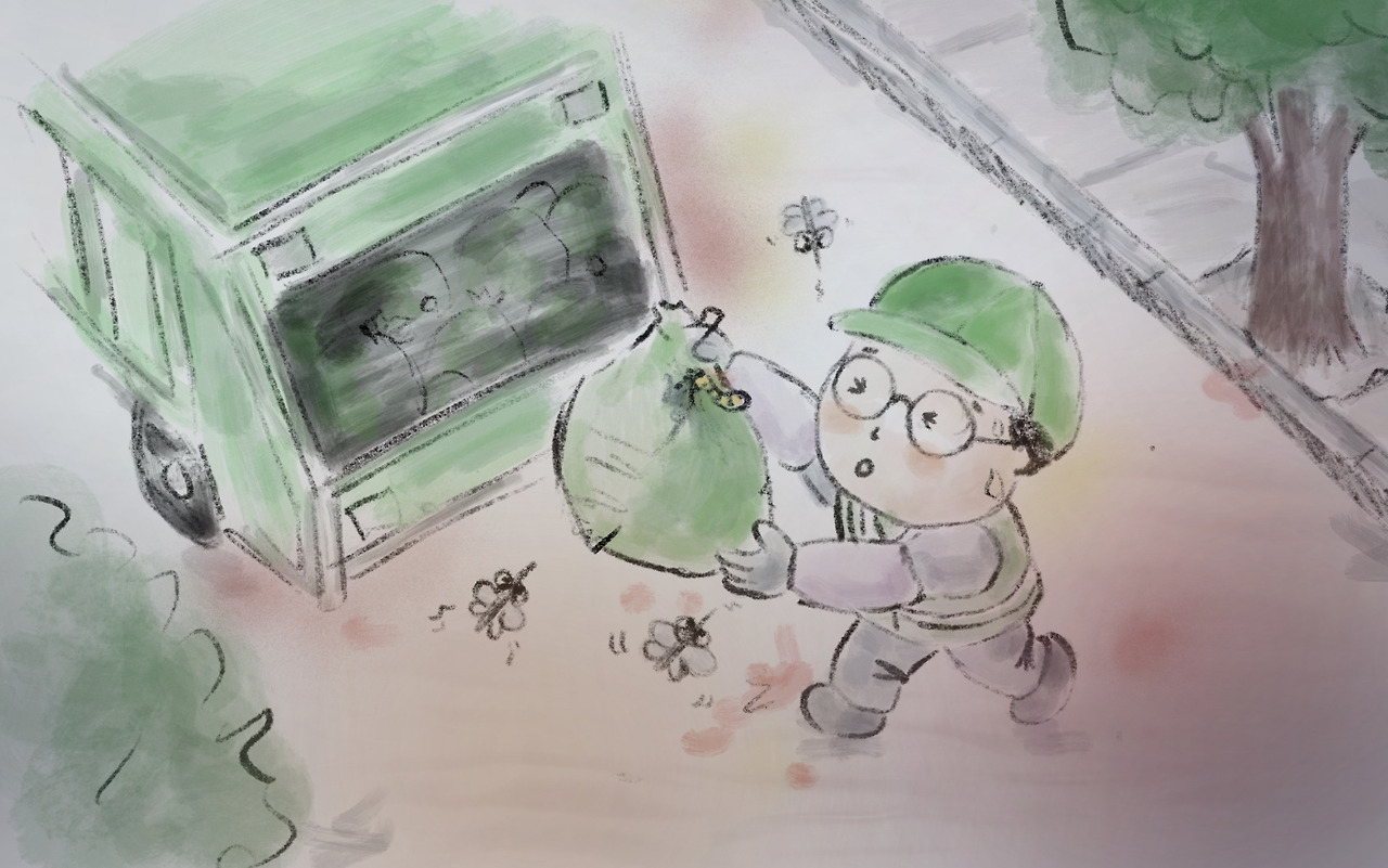 그날도 종량제 봉투를 청소차에 던지며 반복 작업을 하던 중,