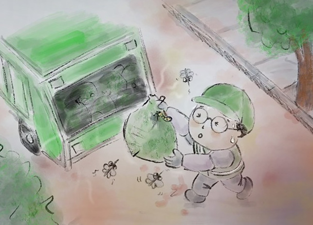 더워진 날씨 속에 삭아버린 음식물 쓰레기가 터지는 순간,