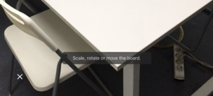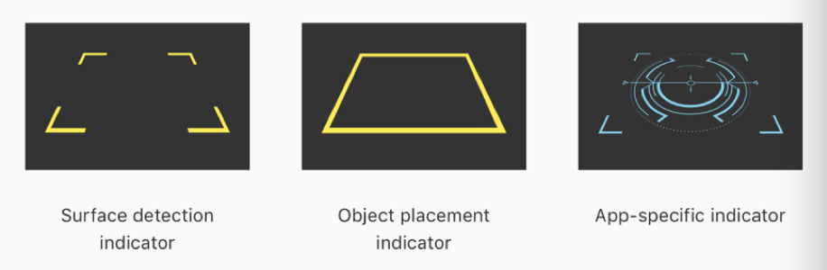 그리고 게임보드를 증강시킬 때 Indicator를 띄워 사용자가 언제 표면을 찾고 물체를 놓아야 하는지, 이해할 수 있는 수단을 사용합니다. 이는 지표면에 배치가 활성화 상태임을 알릴 수 있는 방법입니다. 스크린 중앙에 사다리꼴 사각형은 수평, 수직으로 평평한 표면을 찾아야한다는 추론을 가능케합니다. 또한 지표의 모양을 drag, rotate등 을 통해 변형 가능하게 하여 어떻게 배치될 지 사용자가 미리 예측할 수 있도록 합니다.