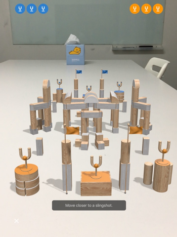 1. Scale, Rotate or Move the board 2. Tap to create Game board 3. Move closer to a Slingshot