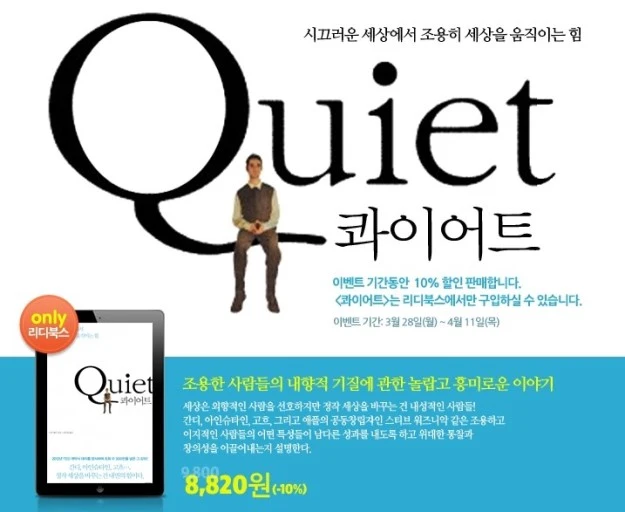 우리 시대는 사교적이고 외향적인 성격을 바람직하고 좋은 가치관으로 여기고 있는데 반대로 소극적이고 내향적인 성격은 좋지 않다고 어려서부터 암암리에 가르치고 있습니다.