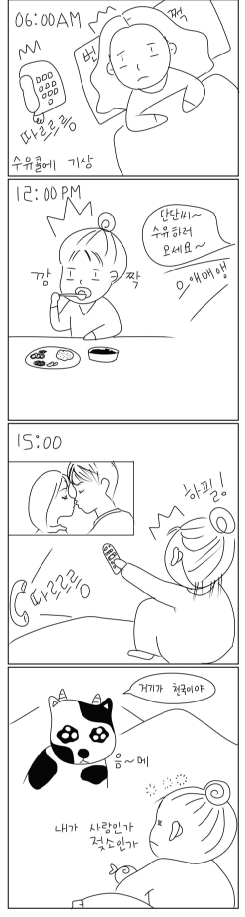 고작 6시간 정도의 수면이라 생각보다 피곤했다. 평소 8시간 풀타임 수면을 하는 나로써는 수련회에 와서 강제 새벽 기상을 하는 것만 같았다. 게다가 새벽 2시나 3시쯤이 되면 기가 막히게 가슴이 땡땡 불어서 졸린 눈을 비비며 유축을 해야 했다. 이 때나 지금이나 유축을 할 때면 나는 강원도 목장의 젖소들을 떠올린다.