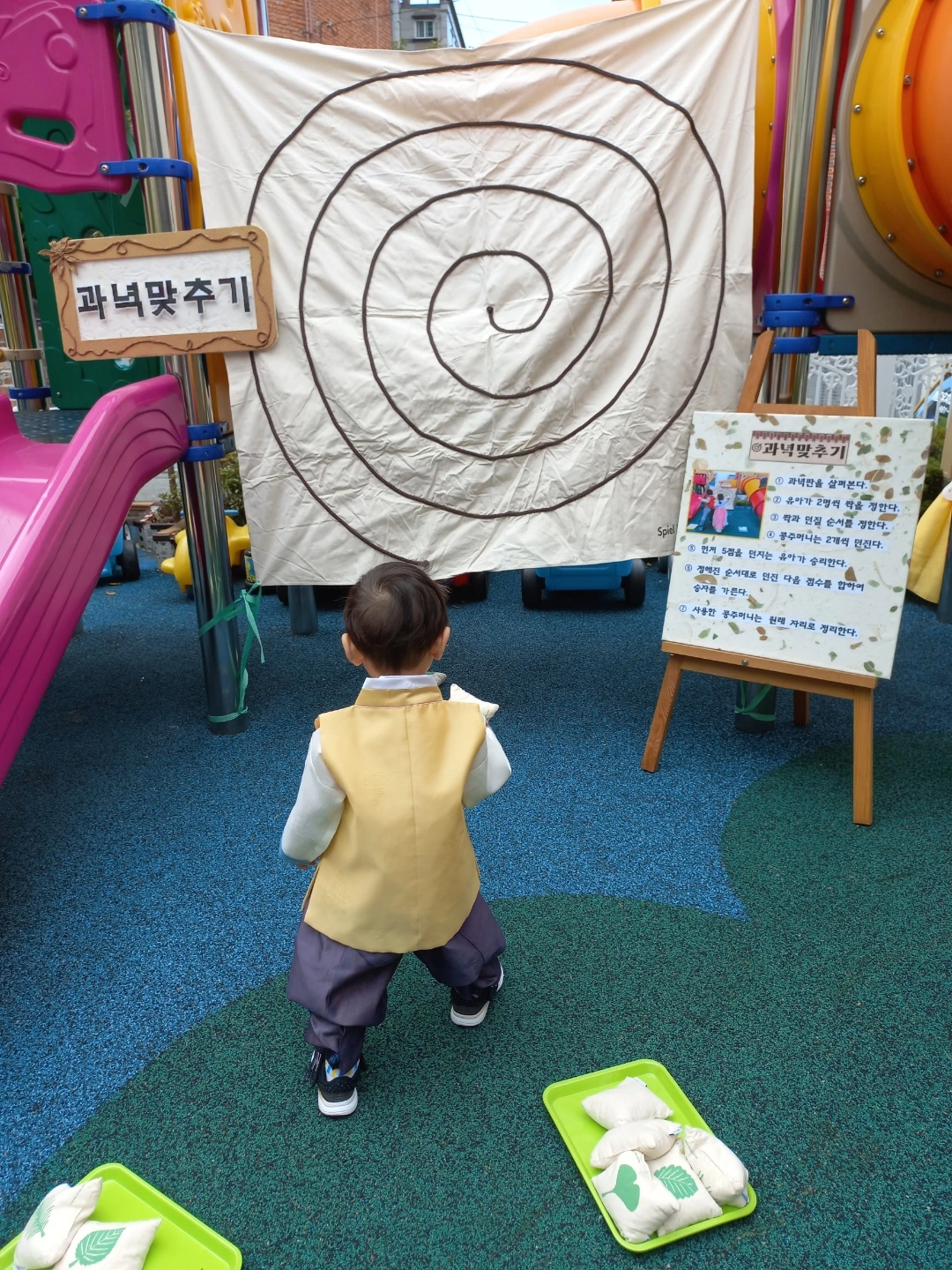그런데 어린이집에서의 행사가 일주일이 밀렸고, 갑작스레 한복을 입고 등원하게 생긴 것이다. 그렇게 진시장에서 친정엄마가 급하게 사주신 노란 한복.