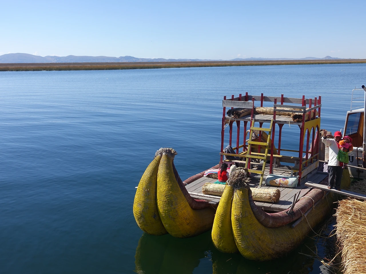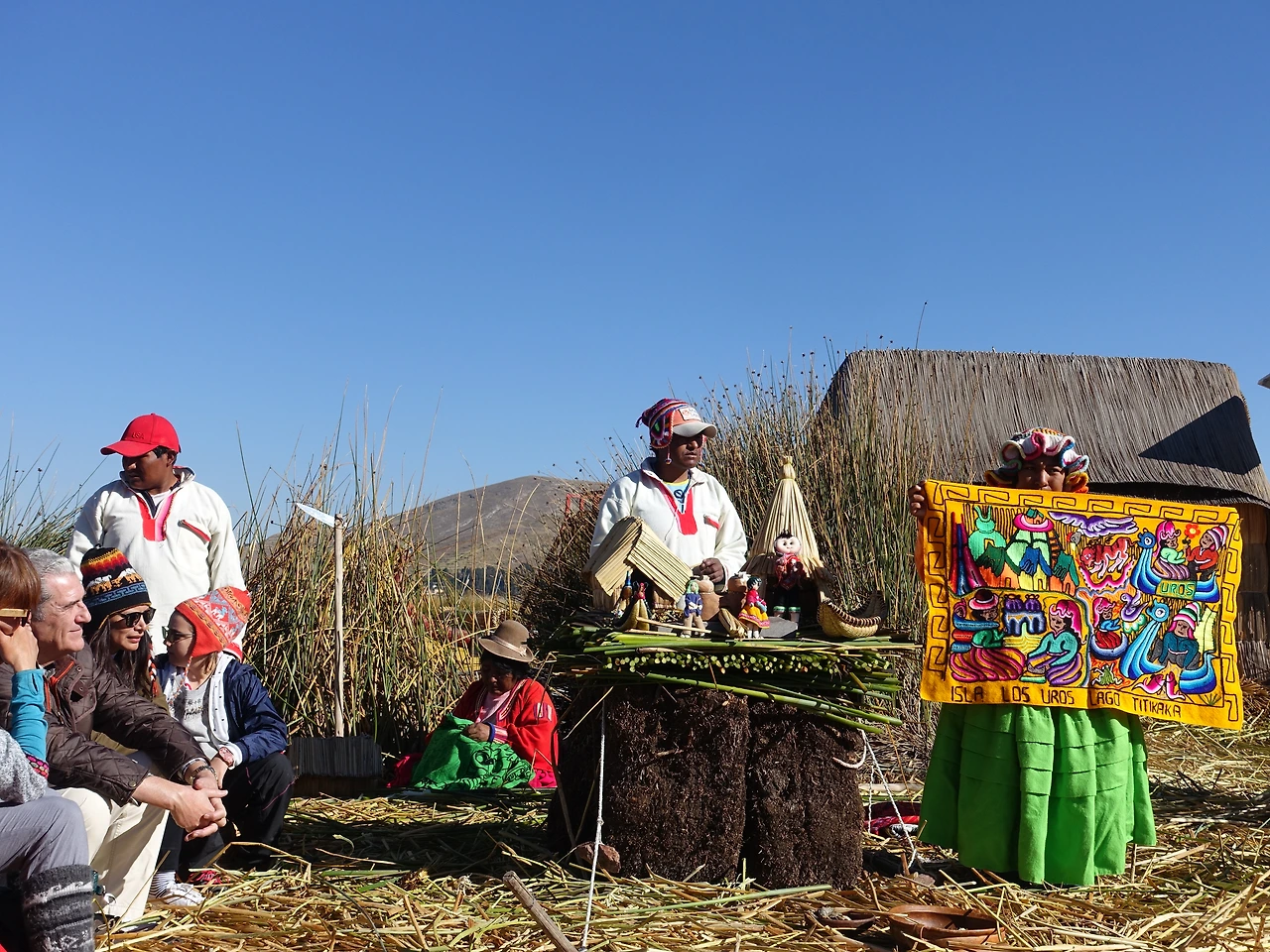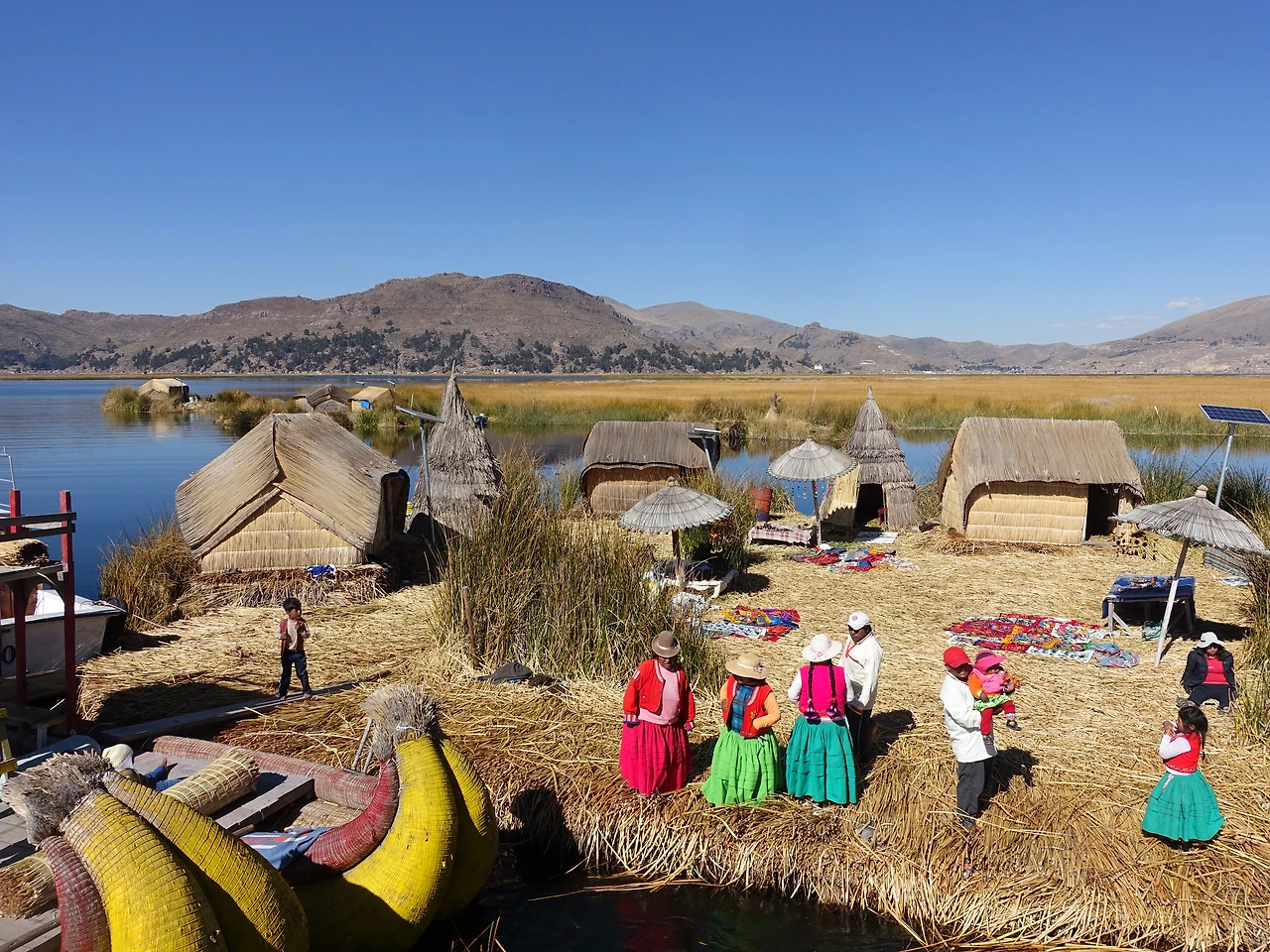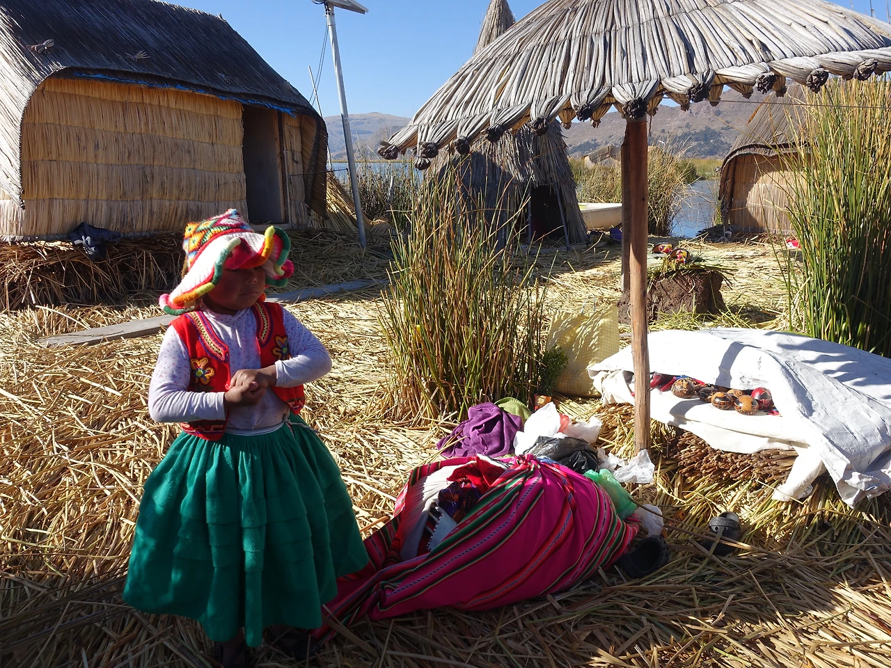 유독 맑은 하늘과 호수의 청량한 파랑 사이로 노란 갈대섬이 하나 둘 보이기 시작했다. 섬마다 알록달록한 전통 복장을 차려입은 사람들이 물가로 나와서 지나가는 배들을 향해 힘껏 손을 흔들었다. 우로스 섬이 지나치게 상업화됐다는 얘기는 하도 들어서 각오를 했지만, 배에서 내리가 전부터 그 기운이 물씬 느껴졌다.
