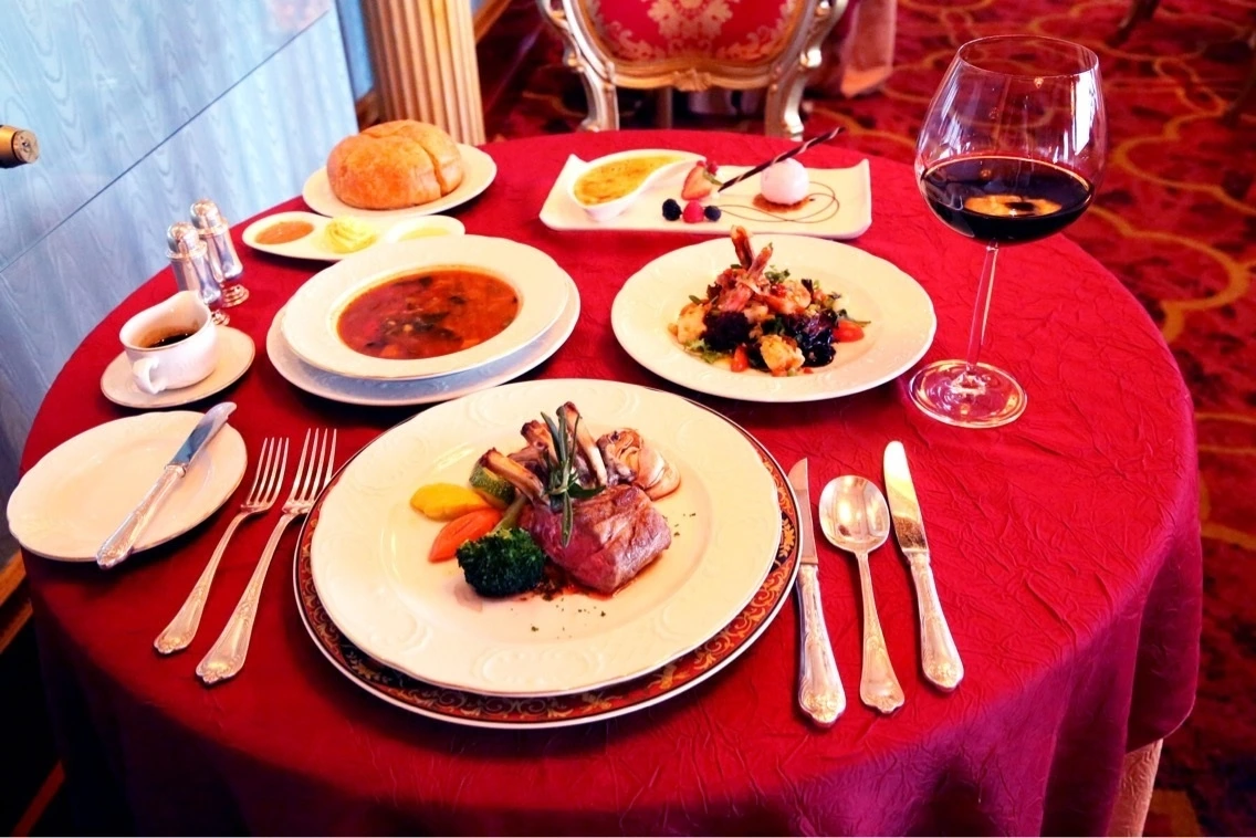 바다 위의 배에서 먹는 음식은 호화롭고 다채롭고 특별하다. 한껏 멋을 내고 정찬 레스토랑에 가서 스테이크나 랍스터를 즐길 수도 있고, 캐주얼한 복장으로 뷔페에 가서 먹고 싶은 대로 배 터지게 즐길 수도 있다. 기분에 따라서는 동경에서 먹는 듯한 오마카세 스시, 로마에서 먹는 듯한 피자, 텍사스에서 먹는 듯한 바베큐 고기, 홍콩에서 먹는 듯한 딤섬 등, 고르기만 하면 된다.