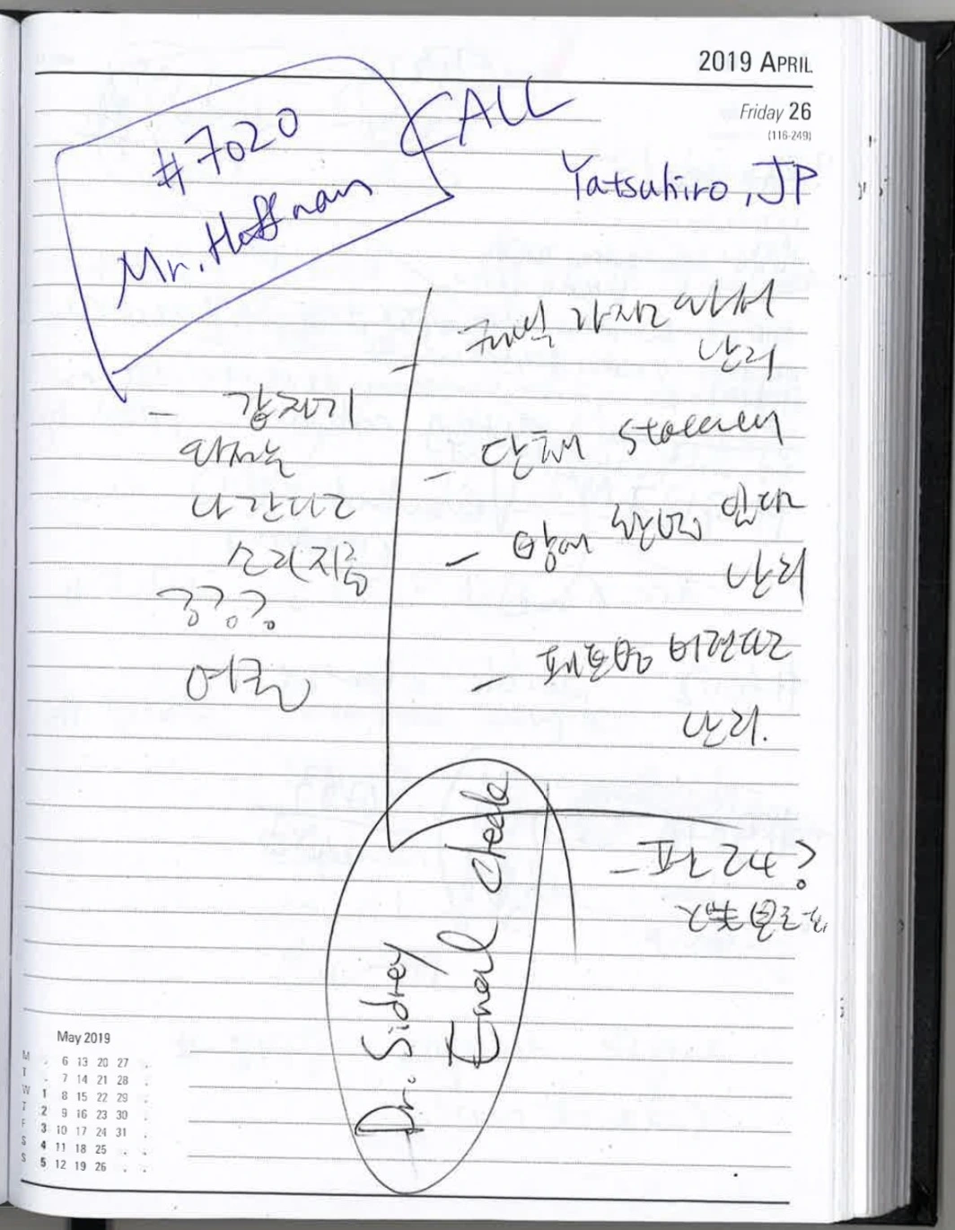 상황은 이랬다. 당시 세관에서 배로 돌아오는 승객을 대상으로 무작위로 검사를 했고, 그중 한 명을 항구에서 놓쳤기 때문에, 승객이 세관을 만나러 항구로 가야 하는 상황이었다. 이는 물론 선사 측이 아닌 일본 측의 요구였고, 승객을 찾을 수 없었던 Admin은 선내 방송을 한 것이다. 조금 전까지 줄지어 오는 승객으로 분주했던 나는 방송을 듣지 못했고, Admin은 나와 공유할 타이밍을 놓친 상황에서 그녀가 들이닥친 것이었다.
