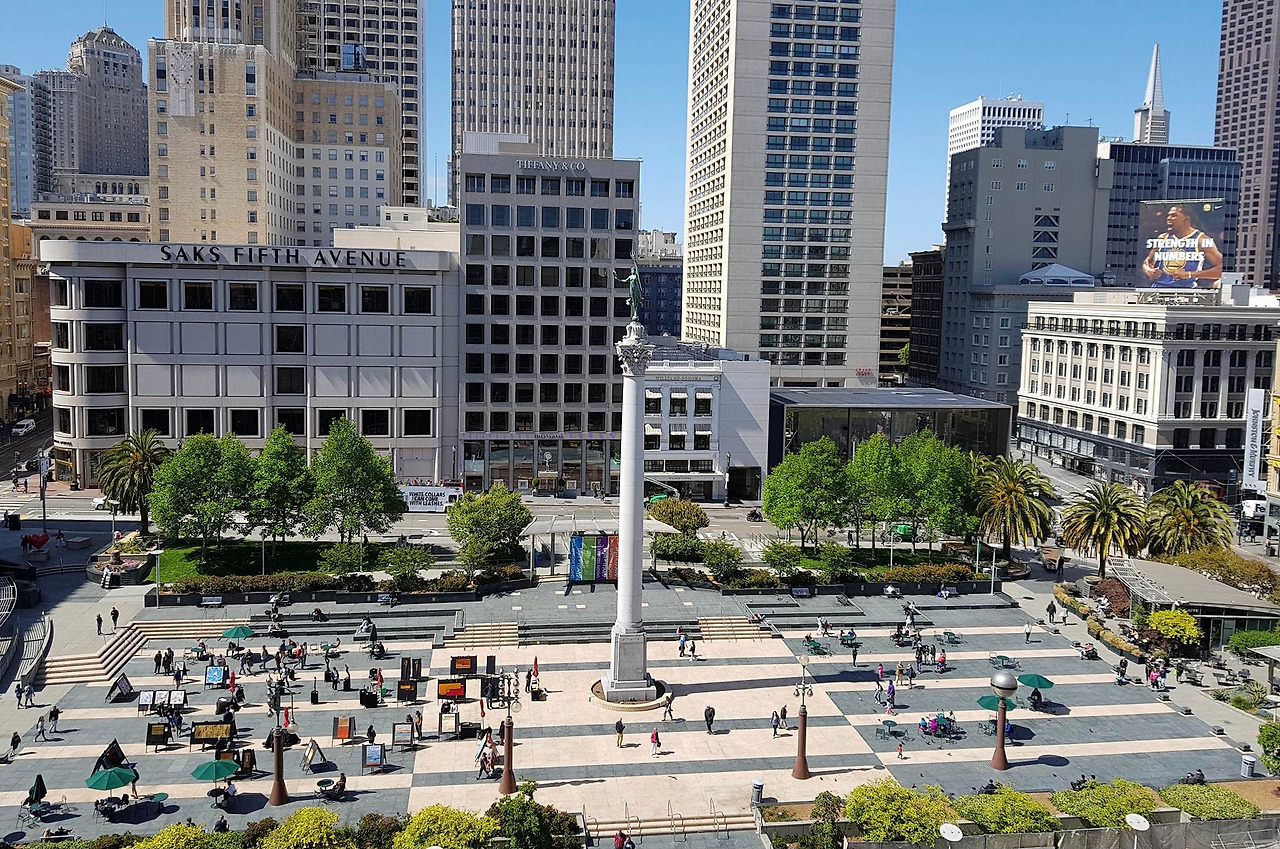 케이블 카를 못 탄 덕에 다음 목적지를 향하면서 샛길로 새봤다. 쇼핑거리와 먹을거리 중심에 있는 광장, 유니온 스퀘어 (Union Square). 유명한 관광지라기보다는 이를테면 서울의 도산공원 정도로, 겨울에 갔다면 거대한 크리스마스 트리 주변에 아이스 스케이트를 타는 사람들로 붐벼있었을 장소다.