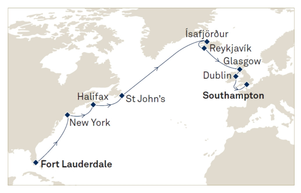 밴쿠버에서 알래스카 크루즈를 마무리하고, 북유럽 크루즈를 위해 큐나드의 고향인 사우샘프턴으로 돌아가는 노선이었다. 그중 첫 기항지는 바로..