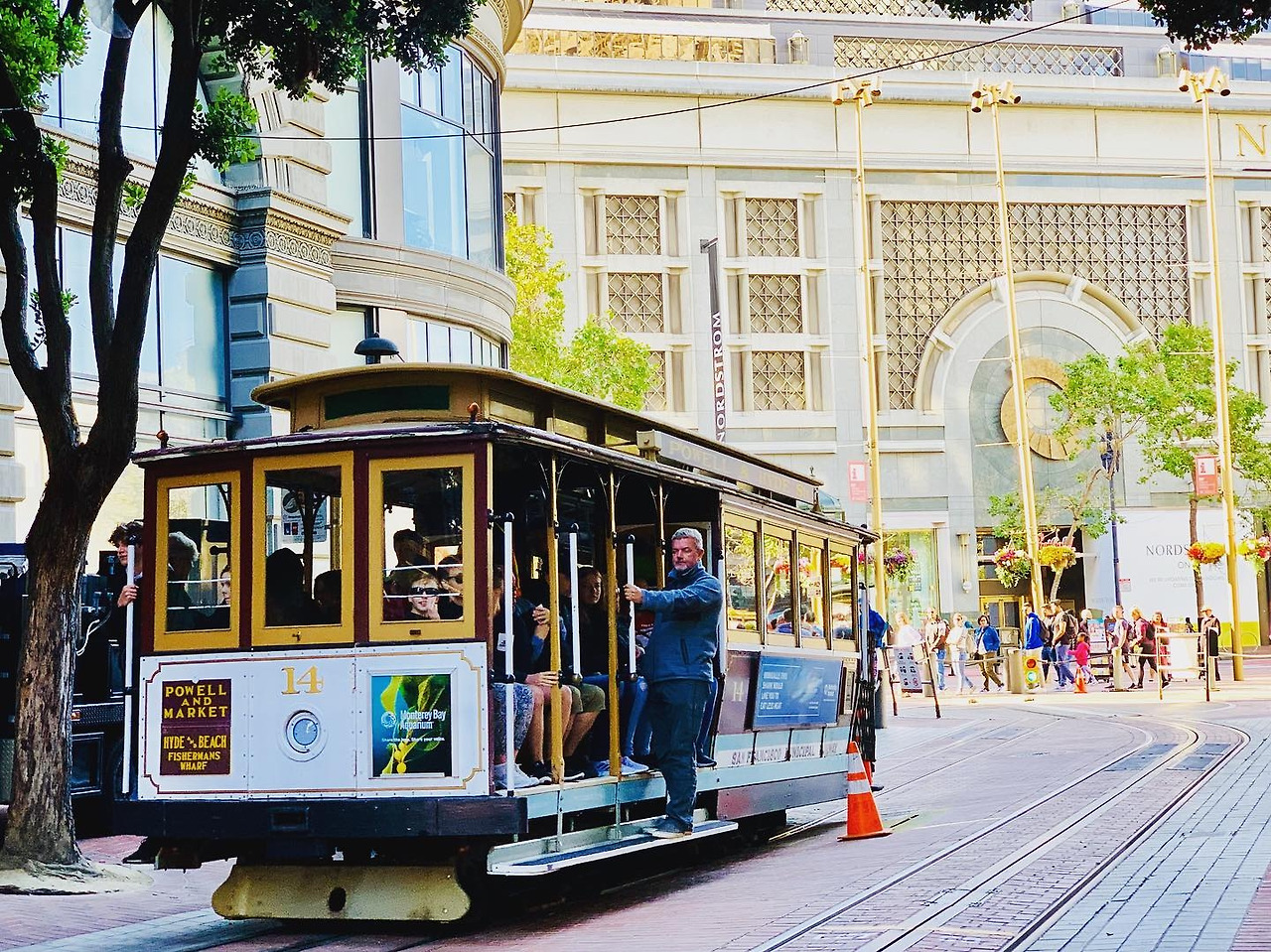번화가에서 가장 먼저 향한 곳은 파월 블러바드와 마켓 스트리트 (Powell Blvd. & Market St.) 의 케이블 카 출발 지점. 영화에도 자주 등장하는, 샌프란시스코의 거리와 언덕을 넘나드는 그 케이블 카를 타기 위해서 갔다. 하지만 케이블 카를 타려는 사람들의 줄이 너무 길었고, 이미 타 있는 사람들도 너무 많았다. 이왕 왔으니 한 번쯤은 타보고 싶다고 생각했지만, 시간이 워낙 빠듯했기 때문에 얼른 사진만 찍고 다음 목적지로 향했다.